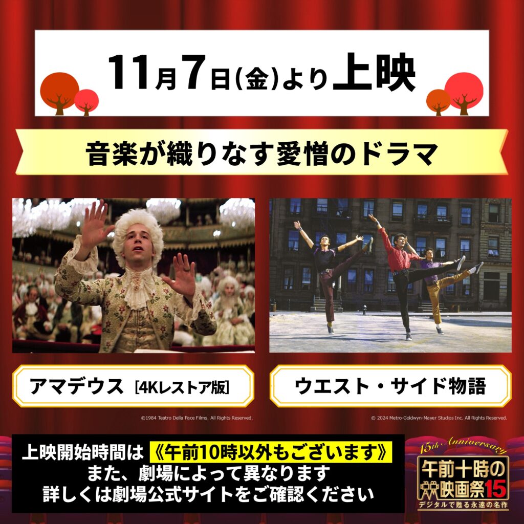 明日7日(金)より上映『アマデウス』『ウエスト・サイド物語』